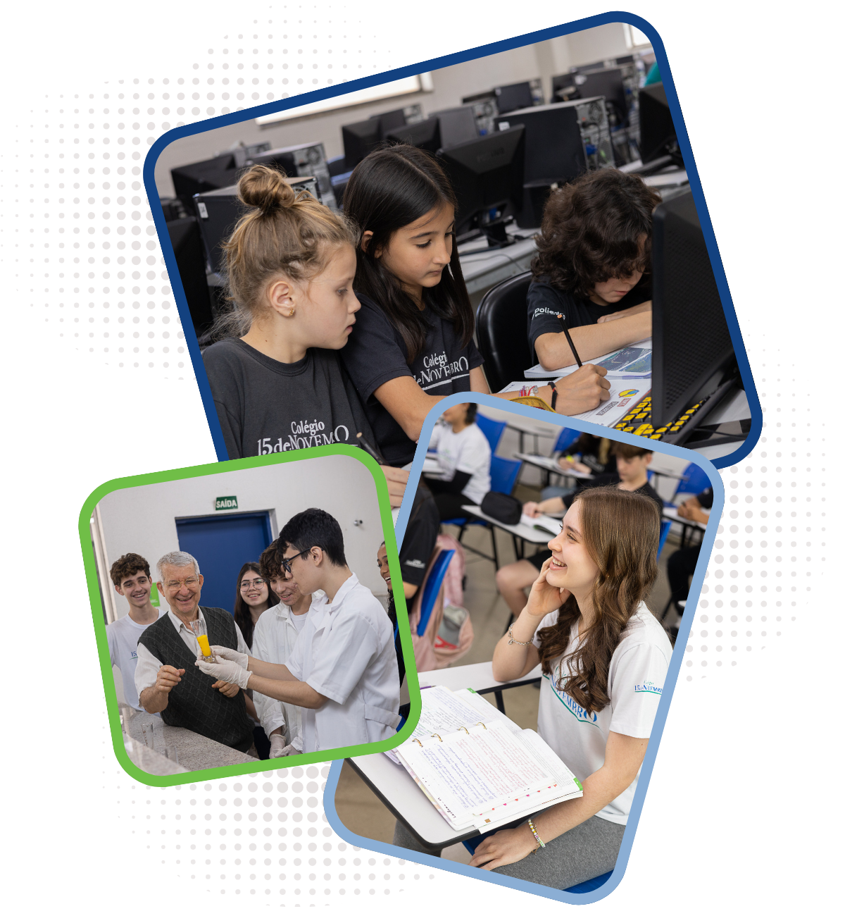 No Colégio 15 de Novembro, cada etapa da vida escolar é vivida com significado. Do Ensino Fundamental ao Ensino Médio, acompanhamos nossos alunos em uma jornada de aprendizado, crescimento e conquistas, formando cidadãos preparados para transformar o mundo com conhecimento, sensibilidade e propósito.