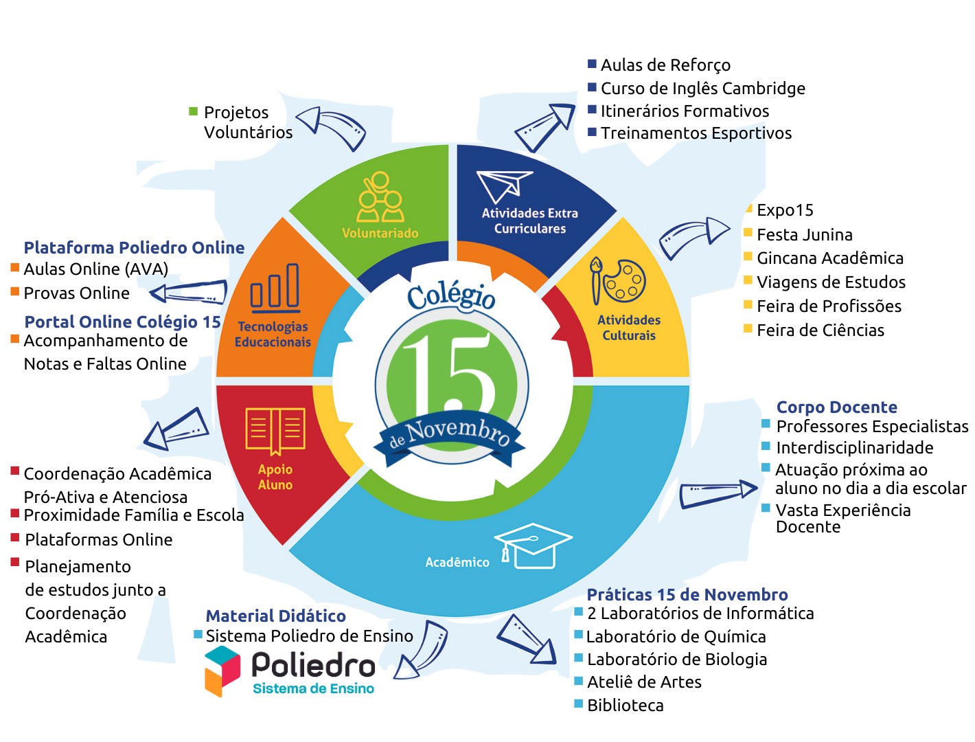 O Colégio 15 de Novembro é parceiro do Sistema Poliedro, referência nacional em qualidade educacional e inovação pedagógica. Essa parceria fortalece nosso compromisso com uma formação completa — que alia excelência acadêmica e propósito humano, preparando nossos alunos para os desafios do presente e as conquistas do futuro.